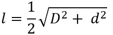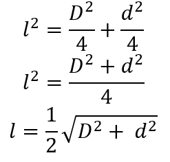 return(math.sqrt(((D/2)**2+(d/2)**2)))