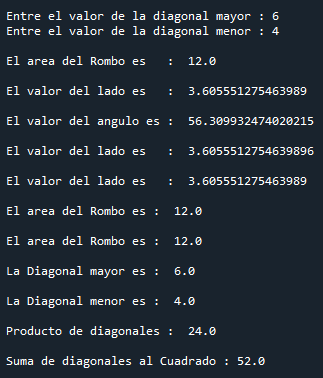D=float(input("Entre el valor de la diagonal mayor : "))