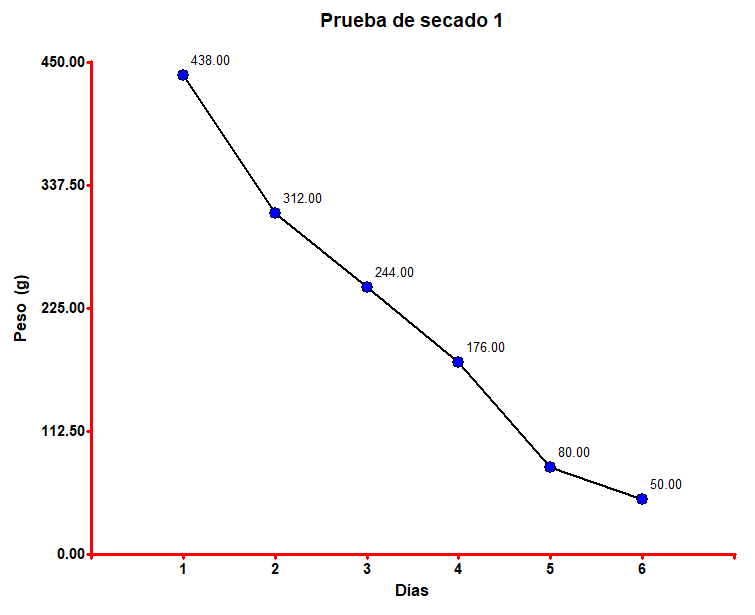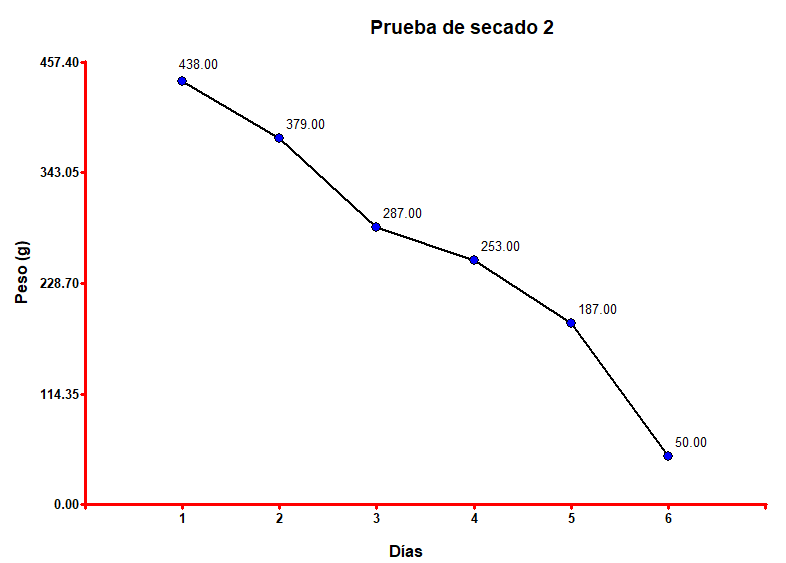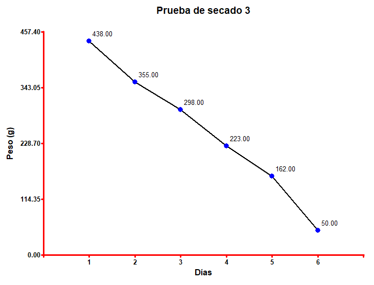 | Tiempo de secado (Días) | Peso final (g) | 22 | 0.88 | 0.0001 |