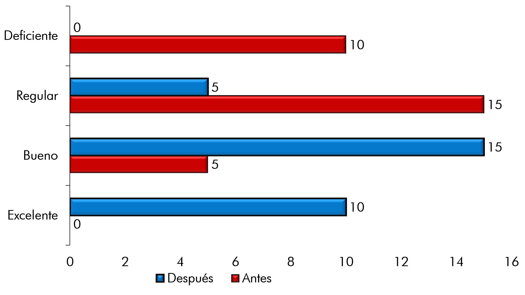 Se implementaron las acciones del procedimiento durante el período enero 2021 hasta diciembre 2021. La figura 1 muestra el cómputo total de datos registrados mediante la observación directa en el terreno, del desarrollo de las competencias profesionales de los Mecánicos B antes y después de aplicado el procedimiento.