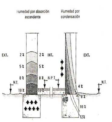 Figura 2: Distribución de la humedad por capilaridad en muros