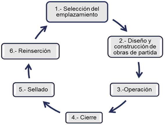 Figura 1. Ciclo de vida de los vertederos de relleno sanitario