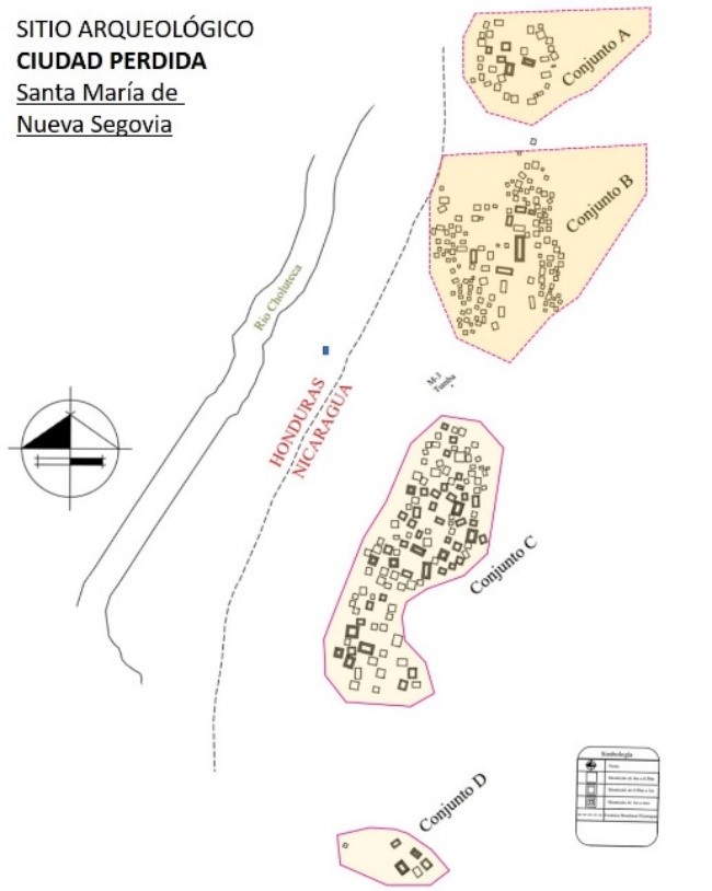 En el caso de la segunda área arqueológica, destaca el sitio conocido como Ciudad Perdida en la finca El Jicaral de la localidad de Las Brisas. Como se mencionó anteriormente, éste se emplazó en la cima de una gran loma, entre fuentes acuíferas, lo que, además del vital líquido y otros recursos acuíferos, proporcionó condiciones óptimas para la agricultura, así como también, para cierto tipo de defensa y protección natural ante incursiones de otros pueblos. Está conformado por 303 estructuras8 visibles en superficie, con predominio de estructuras cuadradas, seguido de rectangulares (estas son las de mayor dimensión) y en menor cantidad circulares. Con plazas principales y secundarias entorno a las estructuras rectangulares de mayor dimensión. Las construcciones están orientadas conforme puntos cardinales y organizadas en líneas paralelas de norte a sur, un patrón claramente mesoamericano.