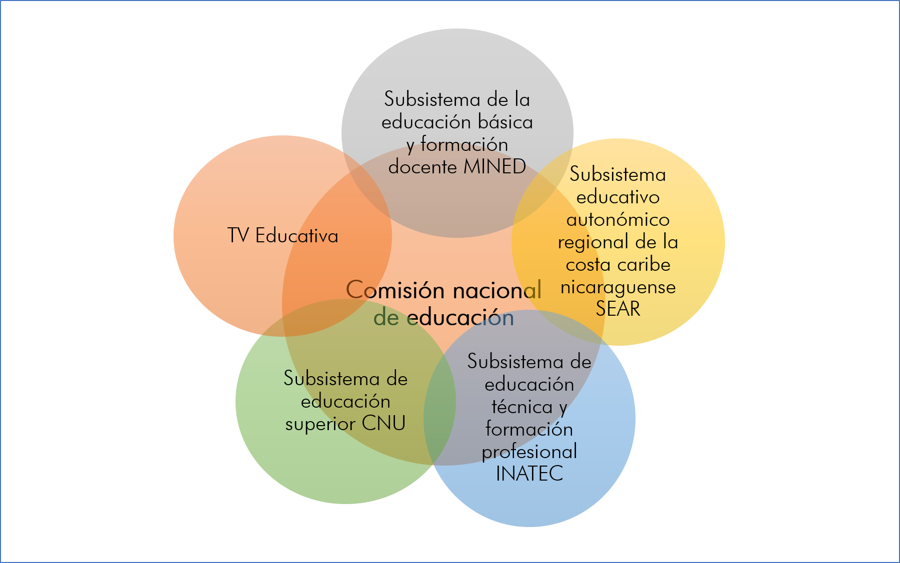 La articulación del Sistema Educativo Nacional permite sumar capacidades del CNU, INATEC y MINED para fortalecer la calidad educativa, aportar la coherencia del sistema y al desarrollo de capacidades para alcanzar impactos en los aprendizajes. La Comisión Nacional de Educación es el espacio para el trabajo conjunto y la propuesta de políticas educativas para la toma de decisiones de la Presidencia de la República. (MINED, 2017, pág. 45)