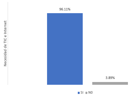 A pesar de las muchas limitantes y desafíos que indican los resultados anteriores, la mayoría de los aprendientes expresan la necesidad de integrar las TIC e Internet en el proceso de enseñanza/aprendizaje en el contexto educativo (Figura 7), esta alta tasa de aceptación es positivo. Sin embargo, es perentorio establecer las condiciones necesarias, mejorar las infraestructuras de telecomunicación y diseñar estrategias más viables que permita un mayor aprovechamiento de los TIC e Internet, para lograr la trasformación educativa y por ende reducir la brecha digital.