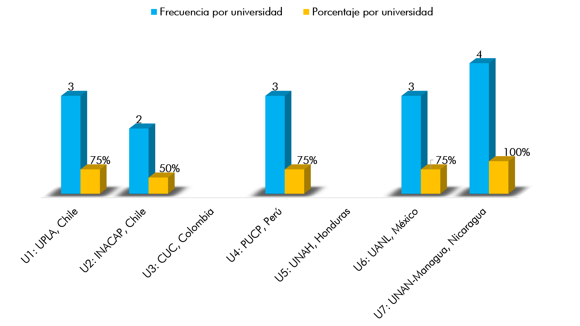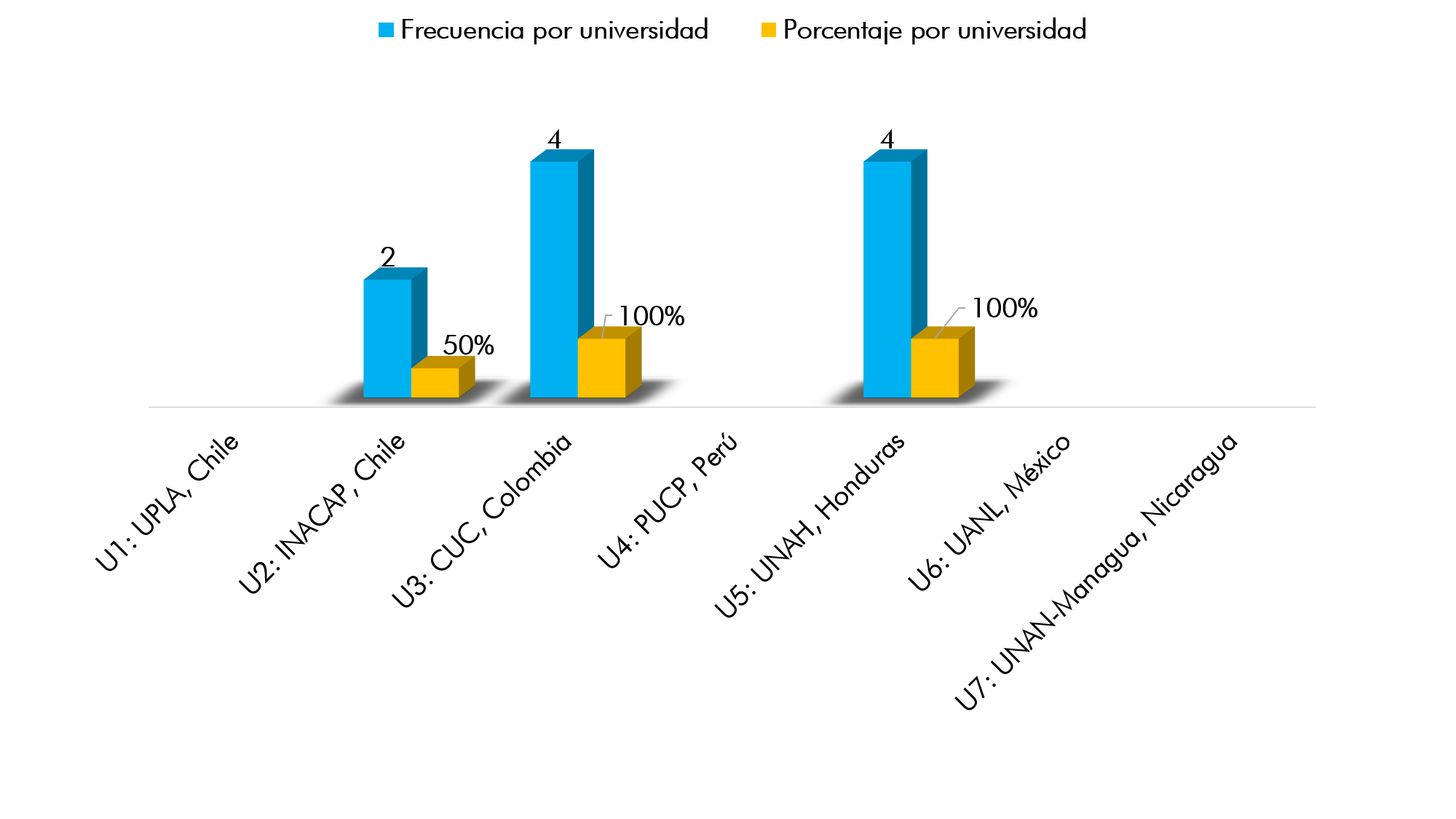 Para la elección de la muestra se escogió el muestreo no probabilístico, con el propósito de comprender el fenómeno de interés. La muestra elegida para el estudio son siete universidades (quienes respondieron a la comunicación realizada y fueron útiles sus aportes) correspondientes a seis países de América Latina (Chile, Colombia, Perú, Honduras, México y Nicaragua), siendo estas: