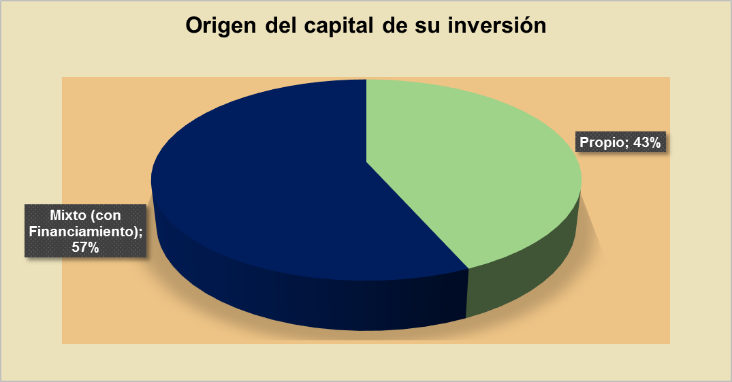 El gráfico nº4 muestra, que más de la mitad de los empresarios recurren a financiamiento de entidades crediticias para el apalancamiento de sus negocios (57%), un 43% trabaja únicamente con capital propio.