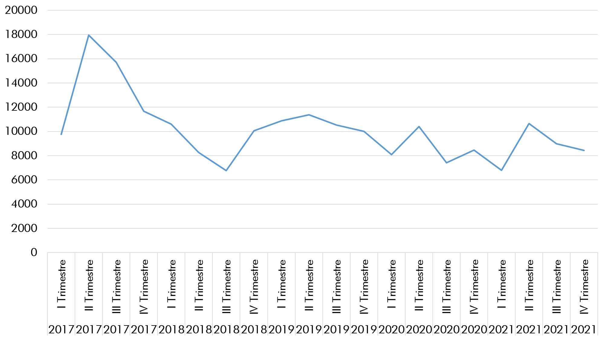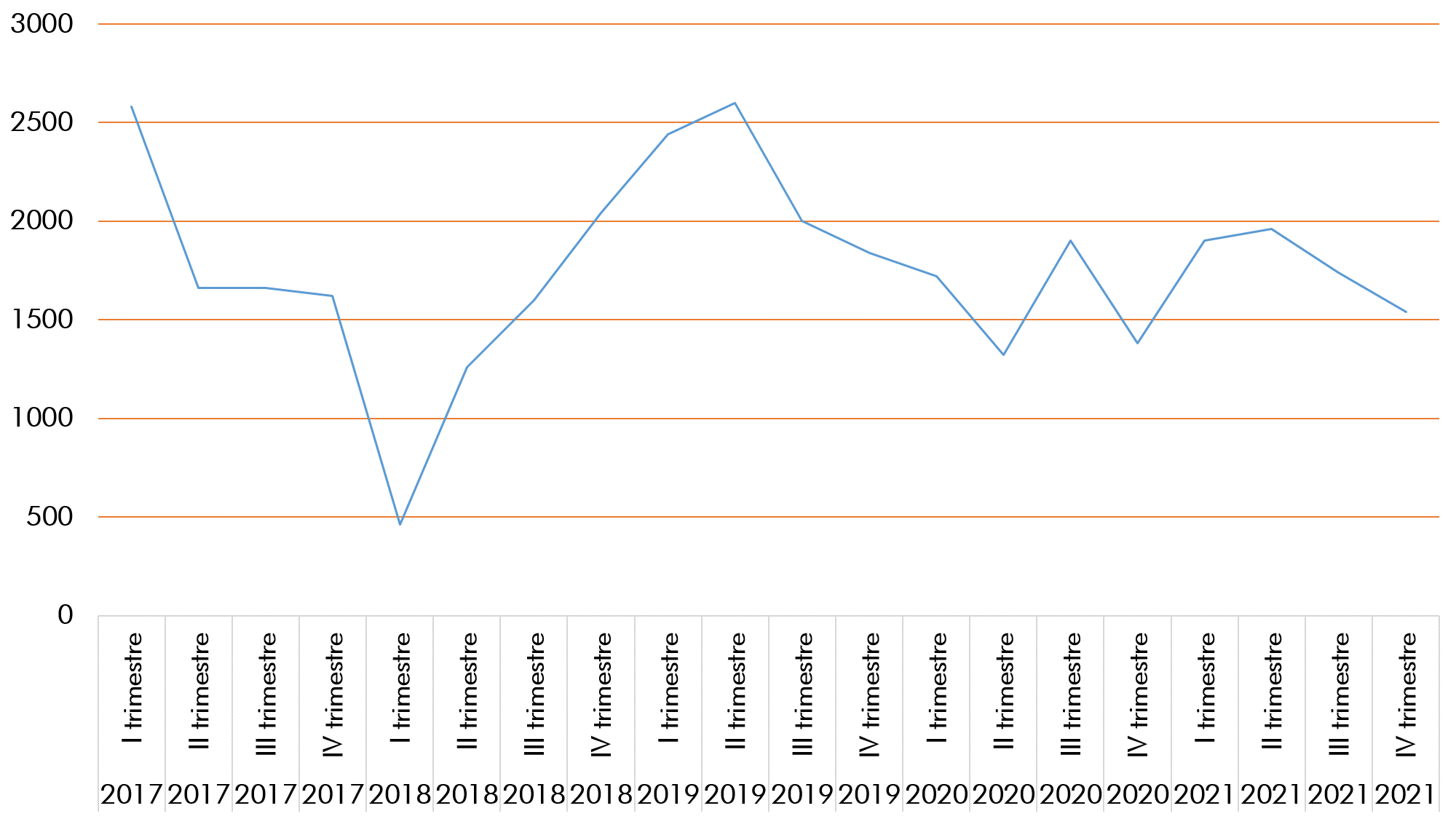 Figura 3. Consumo promedio de energía por trimestre (kWh). Acometida 2. Período 2017-2021