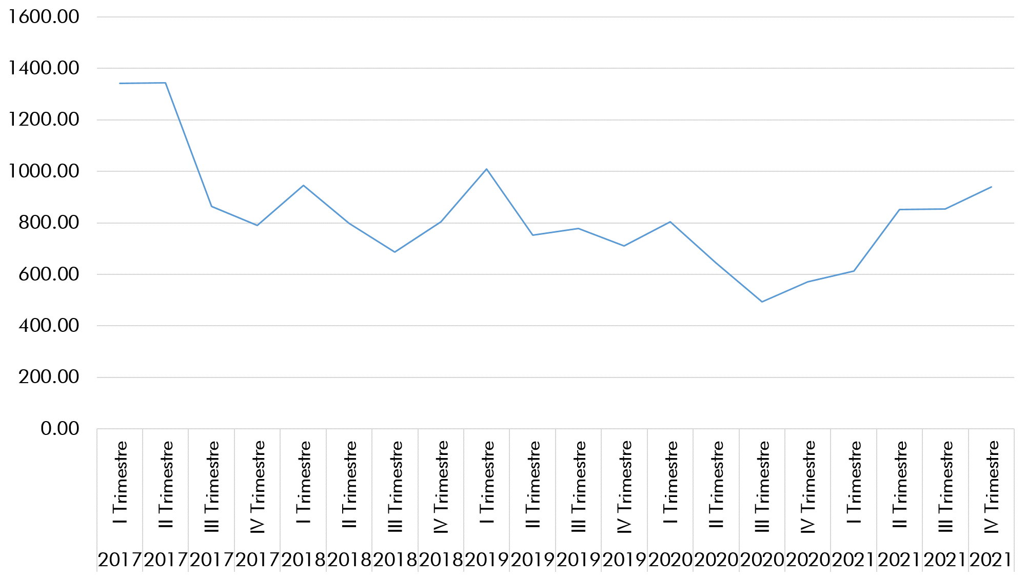 Figura 2. Consumo promedio de energía por trimestre (kWh). Acometida 1. Período 2017-2021