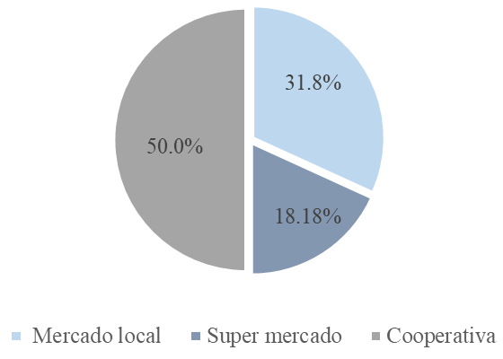 La figura 4, indica que el 50% de los productores entrevistados entrega su producción a la cooperativa, esto refleja el universo de los asociados, sin embargo, los productores independientes el 31.8% entrega su producción al mercado local y el 18.18 de estos mismos lo entrega a supermercados por compras de apartados. Esto resulta en un beneficio para los socios dado que no tienen que lidiar con el precio de mercado, ya que los contratos que firman con Wal-Mart les garantiza un precio estable independientemente de cómo este la plaza, en cambio los productores independientes tienen que comercializar a como está la plaza en la fecha de cosechas, esto desestima la producción y los ingresos esperados por las familias productoras.