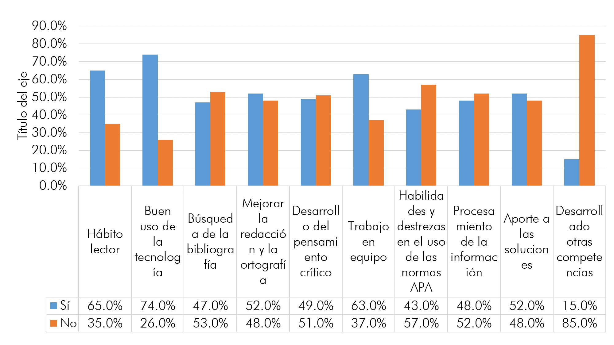 Por tal razón, a manera de una autoevaluación, los estudiantes consideran haber alcanzado ciertas competencias a través de la práctica de la investigación.