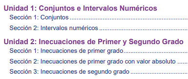 Si se observa la sección 1 aporta en sus 5 contenidos los conocimientos necesarios para poder aplicar los conceptos de unión e intersección en la sección 2 sobre intervalos numéricos, donde el estudiante va aprendiendo de forma sucesiva cada concepto y su aplicación de cómo interpretarlo, esto resulta amigable por no se le proporciona todos estos contenidos a los estudiantes en uno o dos periodos de clases de 90 minutos como se hacía antes de la implementación de esta metodología, por lo que el estudiante diariamente va recibiendo un contenido hasta llegar al punto clave donde se aplican todos los aprendizajes y al estudiante le resulta cómodo y entretenido ir aprendiendo matemáticas de una forma más gradual y no tan compleja.