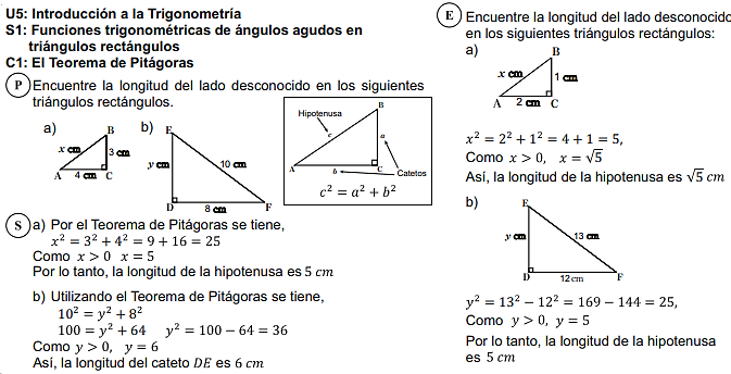Competencia de eje Transversal: # 5.1 Identidad Personal, Social y Emocional: Fortalece su autoestima, confianza y seguridad, al respetarse a sí mismo y a las demás personas reconociendo sus características, necesidades, roles personales y sociales. Indicador de logro: #5.1 Resuelve situaciones en diferentes contextos, relacionadas con las funciones trigonométricas de ángulos agudos en triángulos rectángulos, que le ayuden a fortalecer su autoestima. Aprendizaje Esperado: Aplica el Teorema de Pitágoras para encontrar la longitud desconocida de un lado de un triángulo.