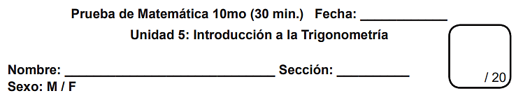 Las pruebas se aplicaron en dos fases. En la primera fase se utilizó la prueba de unidad al terminar la unidad 5: Introducción a la trigonometría que tiene 4 secciones y cada una tiene 4 y 5 contenidos respectivamente.