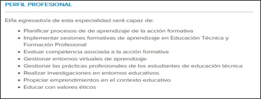 Perfil profesional de la carrera Técnico Especialista en Docencia de Educación Técnica y Formación Profesional periodo 2021-2022
