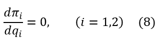 Como (𝑞∗,𝑞∗) es la solución simultanea de las ecuaciones (9) - (10), entonces es el equilibrio de Nash del juego no cooperativo de Cournot propuesto. A demás, al ser 𝑞1=𝑞2=𝑞∗, el equilibrio de Nash es simétrico.
