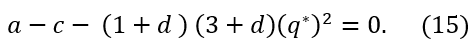 De la ecuación (16) se obtienen dos posibles soluciones para 𝑞*:, o bien