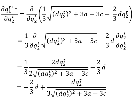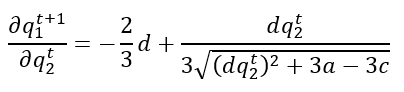 Como 𝑞1𝑡+1 no depende de 𝑞1𝑡 y 𝑞2𝑡+1 no depende de 𝑞2𝑡, las derivadas parcial esy