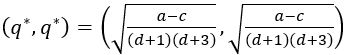 La relación 𝑞1=𝑞2=𝑞∗ lleva a la siguiente cadena de igualdades