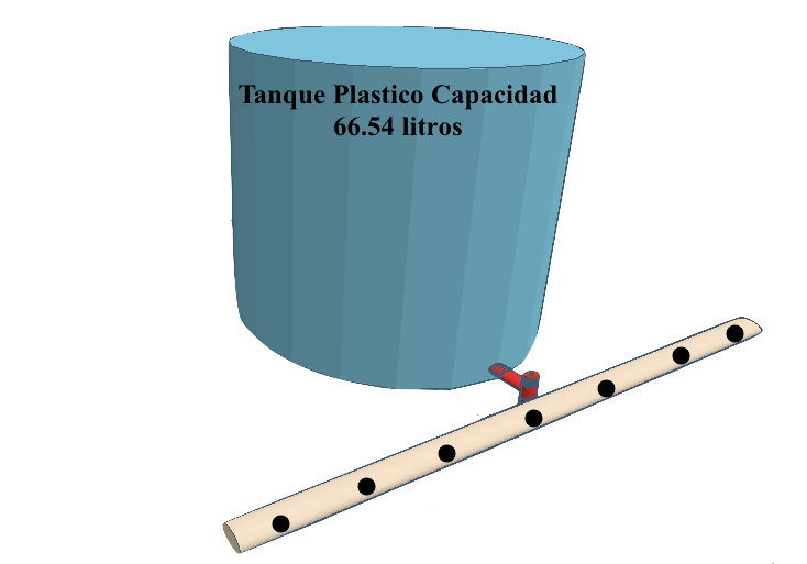 Figura 5. Diseño del Tanque de almacenamiento para simular una escorrentía superficial agrícola, dopada con una solución de 100 mg/l de nitratos.
