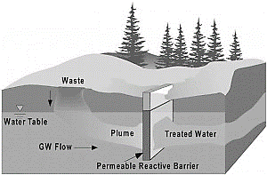 Las Barreras Permeables Reactivas (PRB – Permeable Reactive Barrier) son zonas de tratamientos “in situ” formadas por materiales reactivos que transforman o inmovilizan los contaminantes cuando el agua fluye a través de ellas, (EPA, 1998), Esta tecnología se ha aplicado a un amplio espectro de contaminantes demostrándose su eficacia tanto en la descontaminación de compuestos orgánicos (p.e. organoclorados) como inorgánicos (p.e. metales pesados, nitratos y fosfatos).