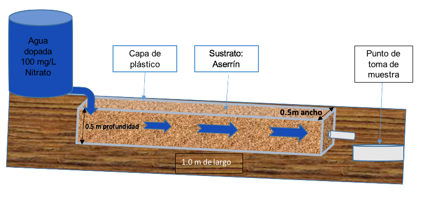 La necesidad de incrementar la seguridad alimentaria ha conllevado a la sobre aplicación de fertilizantes sintéticos. El nitrato es un fertilizante de gran movilidad en los suelos, por lo que, al entrar en contacto con un cuerpo de agua, este puede iniciar un proceso de eutrofización al enriquecerlo excesivamente; así como causar una enfermedad conocida como: metahemoglobinemia. El objetivo de la presente investigación fue diseñar y evaluar una barrera reactiva permeable para remover nitratos en agua de escorrentía superficial agrícola. Esta investigación tiene un alcance de tipo: piloto, a escala de laboratorio y aplicada dado que los resultados resolverán una problemática identificada, de corte exploratorio desde el punto de vista de la profundidad de la investigación, por abordar un campo nuevo en Nicaragua, para ello se construyeron dos barreras reactivas permeables con dimensiones de 1.0 metro de largo, 0,5 m de ancho y 0,5 m de profundidad, perfiladas en CIRA/UNAN-Managua. La primera se rellenó con suelo del sitio, la segunda con una mezcla de suelo más un sustrato (previamente seleccionado). El sistema se alimentó con una mezcla de 100 mg/l de nitratos provenientes de un fertilizante sintético comercial (FORMUNICA, NH4NO3). Como fuente de carbono se utilizó aserrín para el desarrollo de las bacterias desnitrificantes. Se tomaron muestras a la salida del sistema los días: 0, 7, 9, 12, 15 y 19, para posteriormente analizar los nitratos presentes. La eficiencia de remoción del sistema fue del 55% para lecho control y 66% para lecho desnitrificante. Es importante destacar los hallazgos relacionados al funcionamiento de las Barreras desde el punto de vista físico en vista que esta tecnología viene a ser una alternativa de bajo costo, fácil construcción, mantenimiento y manejo, con resultados eficientes para la remoción de nitrato.