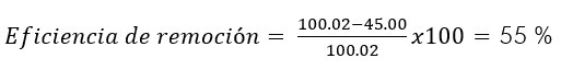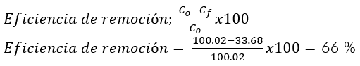 Para el cálculo de la eficiencia de la remoción del sistema de barreras reactivas permeables se utilizó la ecuación 1.0