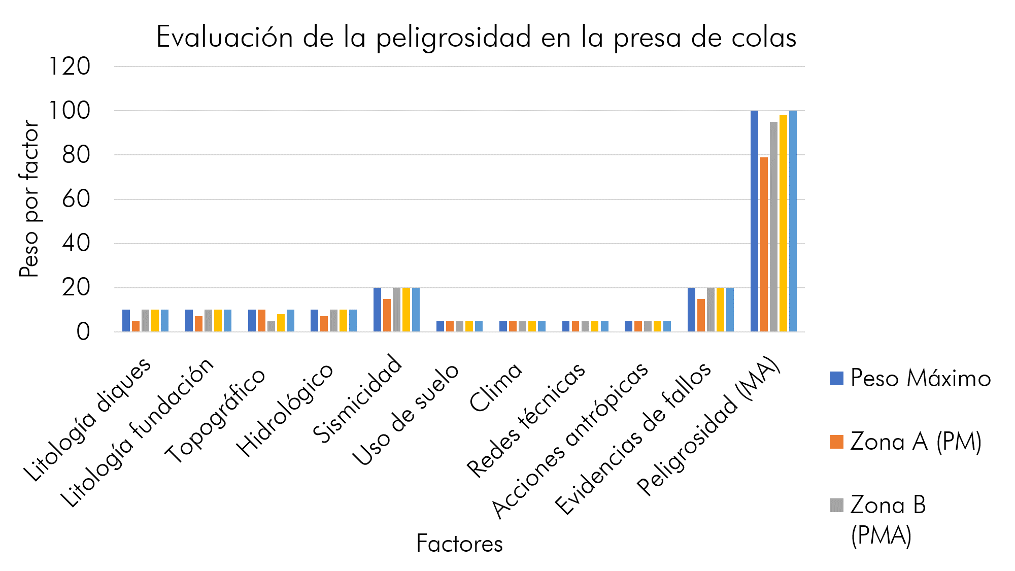 Tabla 2: Peso de los diferentes factores que condicionan y disparan los fallos en la presa de colas