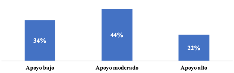 | Apoyo moderado | 9 | 12.30% | 23 | 31.50% | 32 | 43.85% | |