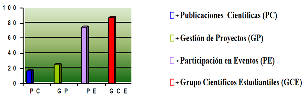 Figura 1. Referida al comportamiento de indicadores de gestión científico-tecnológica en los estudiantes de Gestión Sociocultural. Fuente. Elaboración propia, 2023