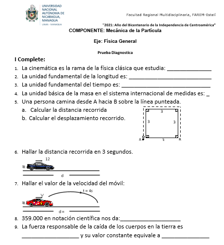 En el Diseño Curricular de la Carrera de Física-Matemática, de UNAN Managua, para desarrollar competencias que demanda el campo laboral, se incorpora el eje de Física General, con el que se pretende que el estudiante muestre dominio de los principios, leyes y teorías de la Física a nivel general, utilizando modelos matemáticos pertinentes para la comprensión de fenómenos de la naturaleza relacionados con la materia, el campo y la energía, presentes en la vida cotidiana. Dentro de este eje se desarrolla el componente Mecánica de la Partícula, el cual brinda a los estudiantes los fundamentos teóricos introductorios sobre la Física General.