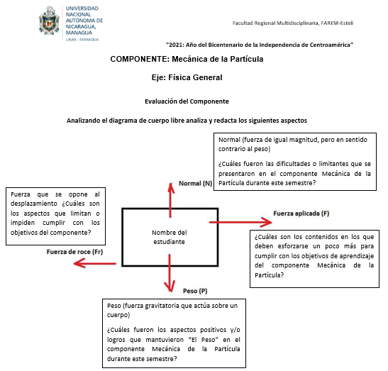 El componente curricular de Mecánica de la Partícula, se encuentra en el segundo semestre de I año, facilitando al estudiante algunos conceptos, principios y leyes que rigen los fenómenos mecánicos, necesarios para que logre explicar las situaciones que surgen en el ámbito social, tecnológico, ambiental y científico, relacionadas con estos temas. Se incluyen algunas temáticas relacionados con fenómenos cinemáticos dinámicos y energéticos, mismas que son fundamentales para comprender las leyes de conservación más importantes relacionados con la mecánica de una partícula. (UNAN Managua, 2021, p.128)