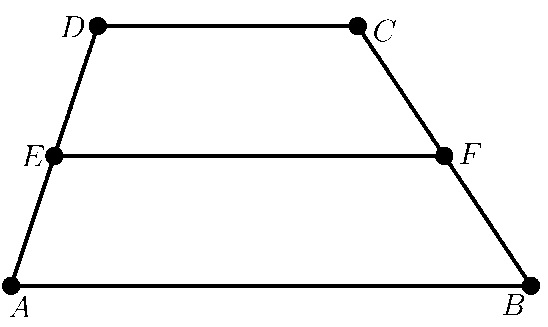 Demostración. Se presentan tres demostraciones para este teorema. Para la primera, considérese el trapecio ABCD con y mediana