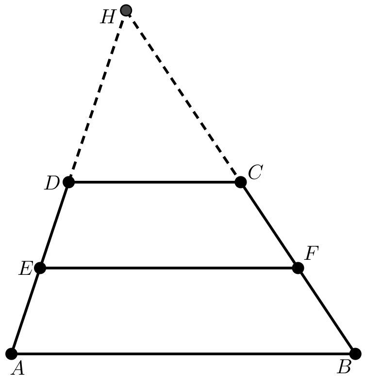 Figura 2. Trapecio con mediana y prolongación de sus lados