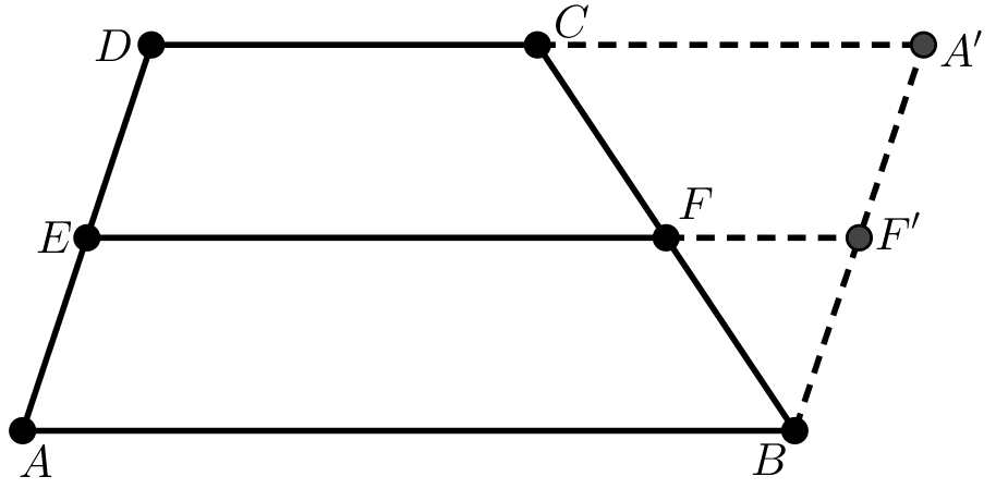 Para la segunda demostración, considérese el trapecio ABCD con y mediana