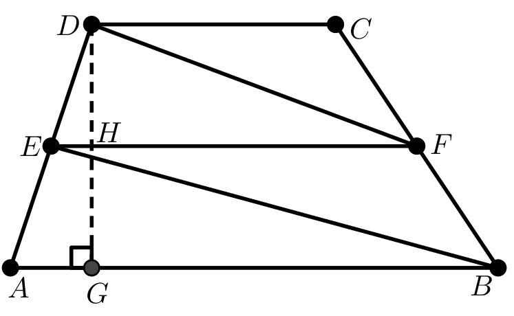 Note que al trazar DF y EB, el trapecio se descompone en cuatro triángulos.