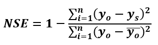 Las variables de esta ecuación fueron definidas en el párrafo anterior y un valor próximo a cero indica un error mínimo y un ajuste satisfactorio de los resultados de modelación respecto a los datos observados o de referencia.