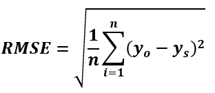 El RSME evalúa el error de los datos simulados respecto a los datos observados o de referencia, y su cálculo se realiza a como sigue: