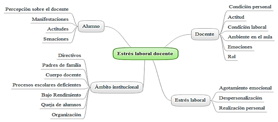 Fig1. Factores convergentes de estrés laboral en el ámbito docente.