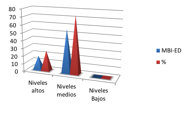 Al aplicarse las escalas de mediciones establecidas para este test, se constata que el 84.2% de los directivos encuestados refiere niveles medios de Agotamiento Emocional donde se valora la vivencia de estar exhausto por las demandas laborales, pérdida de energía, desgaste físico, sensación de sobre esfuerzo, siendo una puntuación directamente proporcional a los niveles de Burnout experimentado por los sujetos.