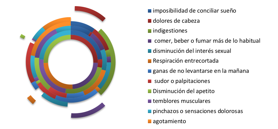 Fig. 5. Prevalencia de síntomas relacionados con el estrés laboral en la muestra estudiada.