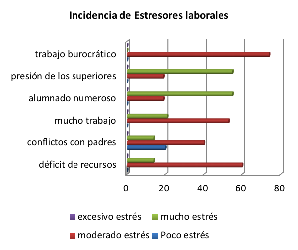 Este estudio posibilitó identificar los factores estresores más determinantes entre la muestra estudiada siendo descritos como los más comunes el alumnado difícil, pobre disposición al trabajo por parte de los alumnos, salario inadecuado, trabajo burocrático o administrativo (llenar informes, reuniones), mantener la disciplina de la clase, comportamiento descortés o irrespetuoso de los alumnos, presiones de los superiores, tener un alumnado numeroso o estudiantes extras por ausencia de maestros entre otros descritos adicionalmente como exigencias hacia el trabajo preventivo excesiva y falta de personal docente especialmente de especialistas como psicopedagogos y logopedas, la implementación de nuevos programas que no responden a la realidad cubana, provocando niveles de estrés valorado como niveles moderados a serios percibidos.