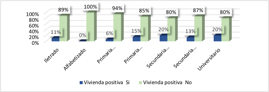 Este resultado difiere del estudio realizado por Neyra en Tambo grande, Perú, donde en las viviendas controles (positivas) fue más frecuente encontrar que el jefe de familia tenía educación superior (p<0,001) (López, 2016).