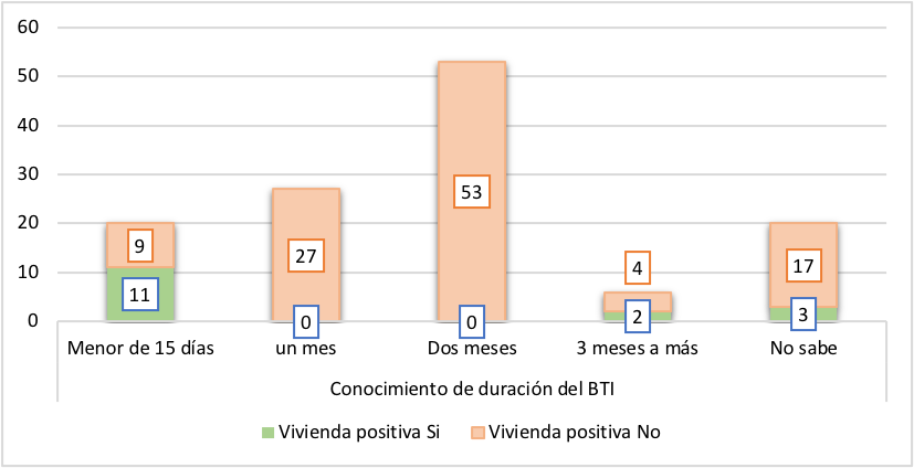 Relación entre conocimiento sobre la duración del BTI y positividad de la vivienda