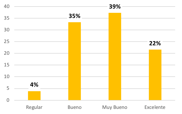 La presente figura muestra cómo es la Dotación y Asignación de Recursos Humanos requerimiento propio de la “Gerencia de Enfermería”. Se evalúo utilizando la Escala Likert donde un 34% del personal encuestado indican como “Bueno” seguido del 30% como “Excelente”, un 24% “Muy Bueno” y solamente un 12% como “Regular”. Esto nos indica la adecuada “Planificación de Recursos Humanos” que realiza la jefatura de enfermería de la unidad de salud, siendo importante la dotación y asignación efectiva de recursos para implementación de objetivos laborales, metas a cumplirse en un tiempo determinado, equipamiento e identificación de habilidades de los recursos, reprogramación de actividades/tareas, entre otros.