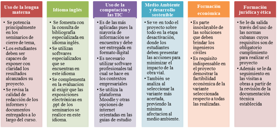 Desde esta perspectiva se perfeccionan los procesos asociados con la formación del Ingeniero Civil a través de planes y programas de estudio. Ello implica el perfeccionamiento del modelo de formación enfocado al uso de las nuevas tecnologías de la información y las comunicaciones; que responda a las demandas y necesidades socioeconómicas actuales del país. Todo ello, con el objetivo de fortalecer la formación integral de los estudiantes, en aras de priorizar el aprendizaje y la adquisición de habilidades para la gestión del conocimiento.