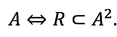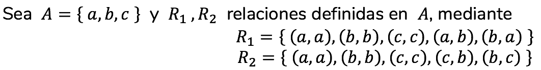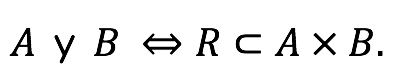 Relaciones definidas en un conjunto: Supóngase que R es una relación entre A y B, donde B=A. En este caso se dice que la relación está definida en A, y se identifica con un subconjunto de A2=A×A.