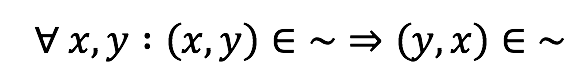Simetría: Si un elemento está relacionado con otro, entonces este está relacionado con el primero.