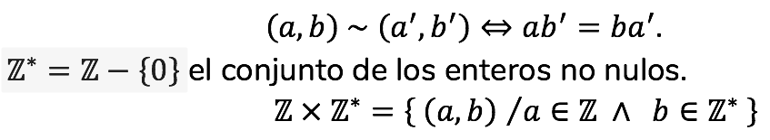 , se parte de una relación definida en el conjunto de pares ordenados de números naturales