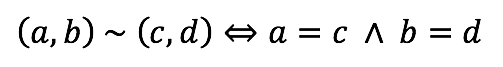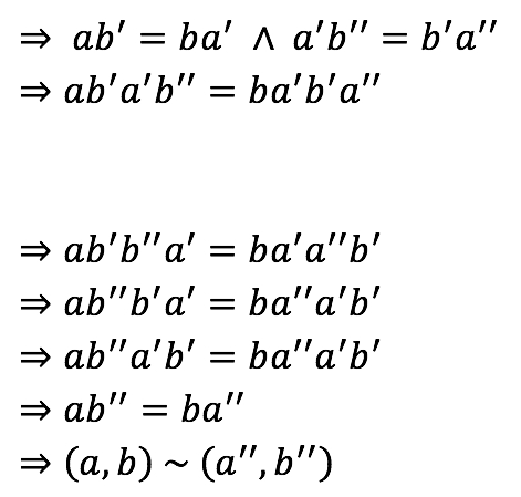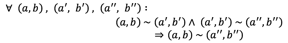 Esta relación de equivalencia establece que dos pares ordenados de números enteros son equivalentes si su producto cruzado es igual. Esta relación es fundamental para la construcción de los números racionales, ya que permite identificar clases de equivalencia que luego pueden ser utilizadas para definir las operaciones básicas sobre los racionales.